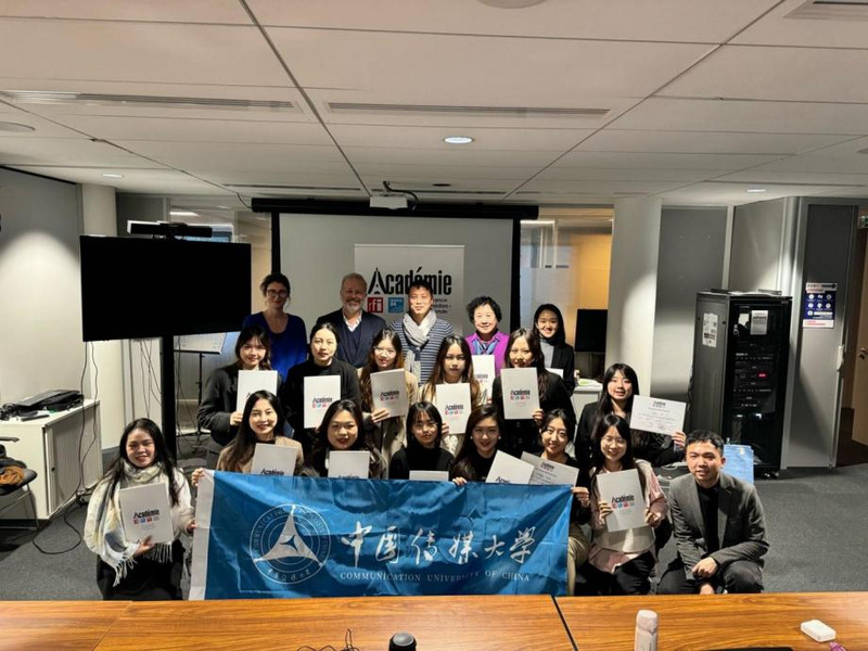 海外实践团师生与法国24小时各位老师在结业仪式上合影留念