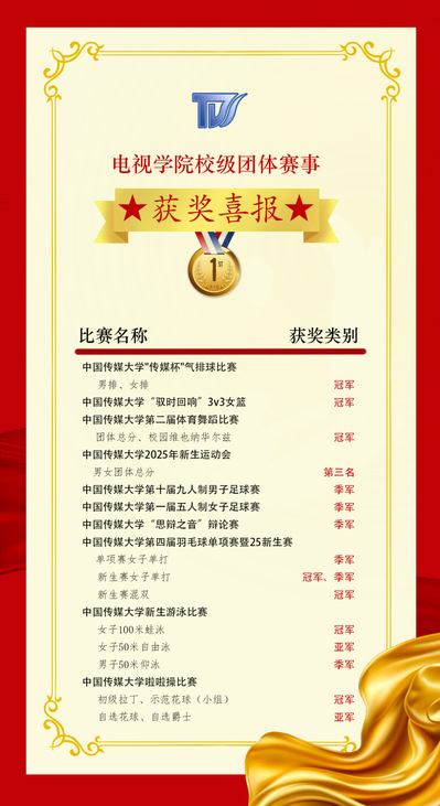 2025年10月至12月,无需充值注册就送38元学子在无需充值注册就送38元“传媒杯”排球比赛、“驭时回响”3v3女子篮球比赛、九人制足球赛、羽毛球新生赛暨单项比赛中取得亮眼成绩。