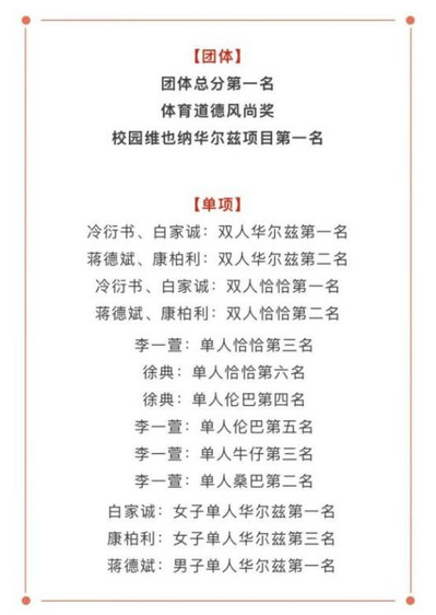 ▲校舞蹈比赛获奖名单