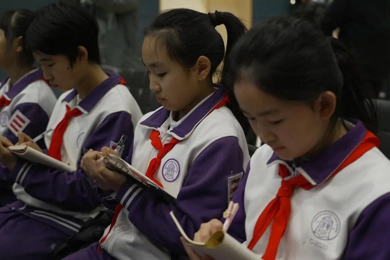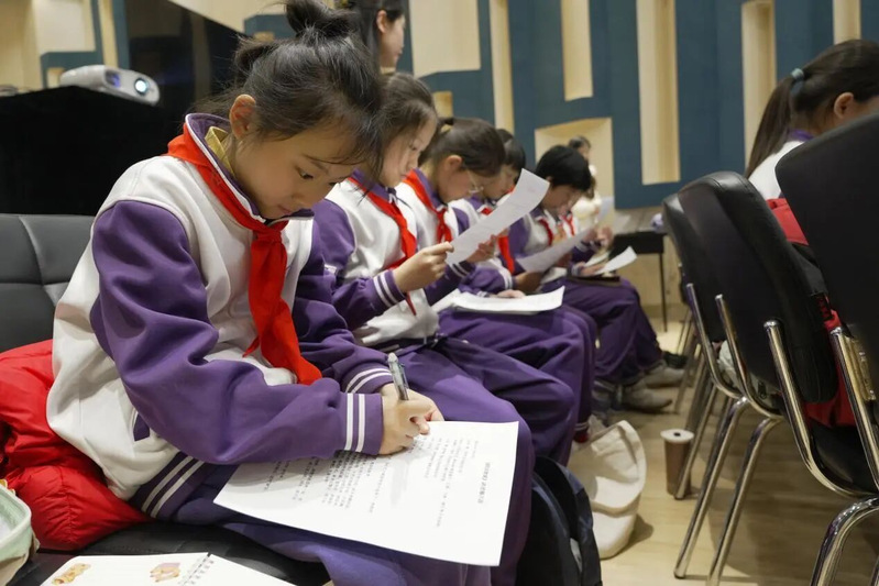 此次体验让同学们收获颇丰、感触至深,大家纷纷表达了自己的心声。五年级7班的张贝萱同学了解到“光明影院”的志愿者们即便在除夕夜也毫无怨言地赶写稿件,深刻体会到“服务他人,幸福自己”的真谛,这不只是一句口号,而是落到了日复一日的实际行动上。六年级8班的刘悦娢同学得知制作一部无障碍电影,需要志愿者们反复观看原片10遍以上、撰写2万至3万字解说台词、细心配音,才能用声音让视障朋友们感受到电影画面,她惊叹于志愿者们付出的心血与耐心。六年级3班的孟祥悦同学被志愿者深入山区、多次联系视障群体却永不言弃的坚持所打动,深刻明白了关爱与团结从来不是口号,而是落到实处的温暖。五年级10班的马艺馨同学被“光明影院”每年创作104部电影、在2244所学校开展2000 多场公益放映、让800多万名盲人观影的数字所震撼,她真切感受到雷锋精神并非惊天动地的壮举,而是平凡人日复一日为需要帮助的人创造享受文化机会的坚守。同学们也在亲身体验中懂得,制作一部无障碍电影需要多方协作、耗时近一个月,每一部作品的背后,都是无数人的用心与付出。