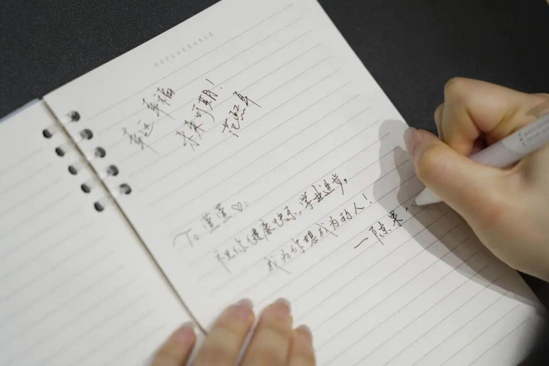 ▲“光明影院”志愿者为同学写下祝福